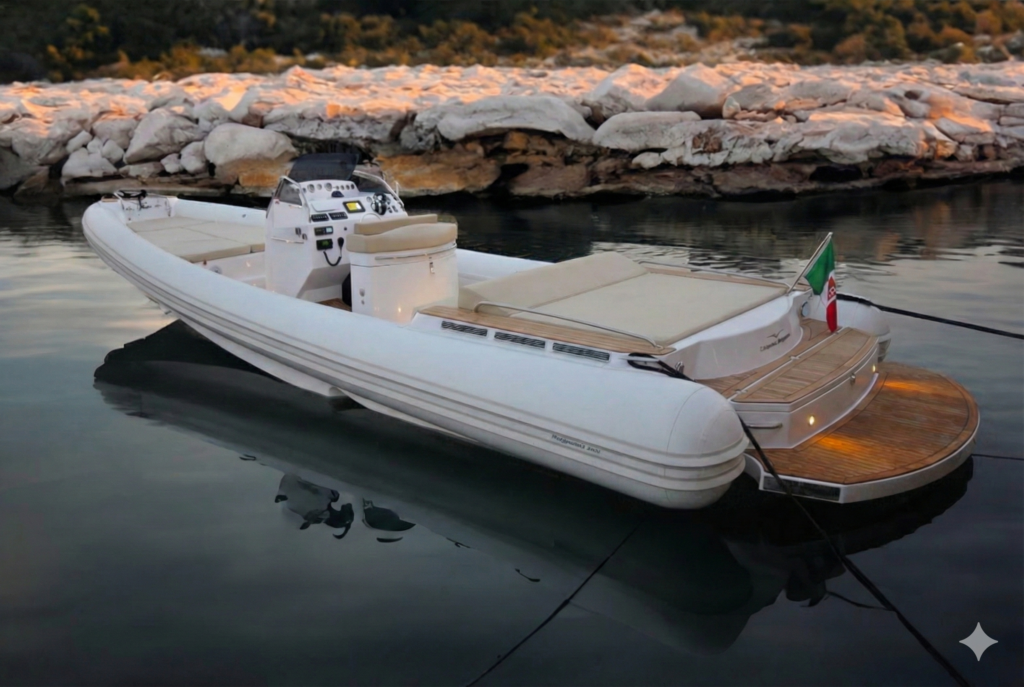 The MX-11 Spider from Cantieri Magazzù is a luxury inflatable boat that combines elegance and power. At 11 metres, it offers a sporty and refined design, ideal for day cruises. Equipped with powerful outboard or inboard-outboard engines, it can reach high speeds in maximum comfort. Its spaces are designed and optimised to offer the best experience of the sea, with large sunbathing areas both at the bow and at the stern. Perfect for those seeking exceptional performance and exclusive style, the MX-11 Spider is synonymous with excellence and luxury at sea.