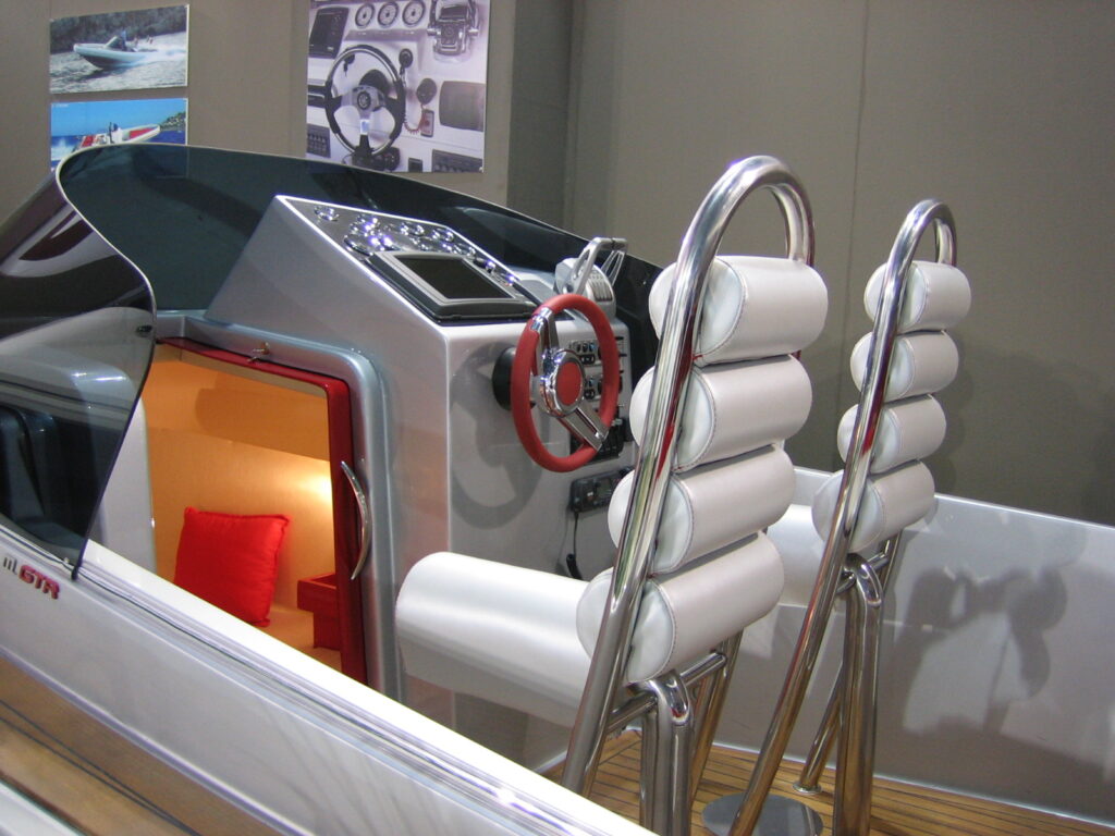Design elements such as the stern inspired by the rear of supercars and roll-bar seating evoke the world of racing.