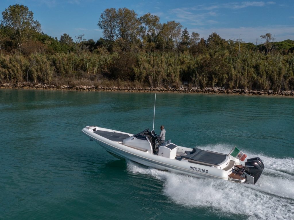 Punto di riferimento del segmento dei Maxi Rib di grandi dimensioni , l’MX-11 si caratterizza per l’eleganza stilistica delle sue linee che gli consente, nella versione “Coupe”, di alloggiare anche una vera e propria cabina, completa di locale bagno separato, mantenendo una linea pulita e raffinata.Pregiati i materiali impiegati per la costruzione: ibridi di kevlar, unidirezionale di carbonio e resine epoxy-vinilestere per lo scafo.